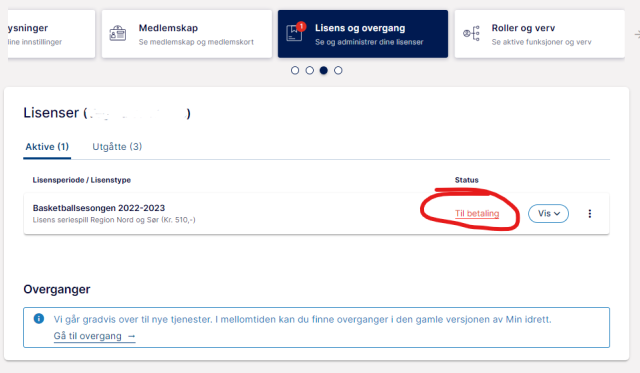 Her vil du se at det ligger lisens tilbetaling (under oppgaver) – se bildet. Klikk på den!